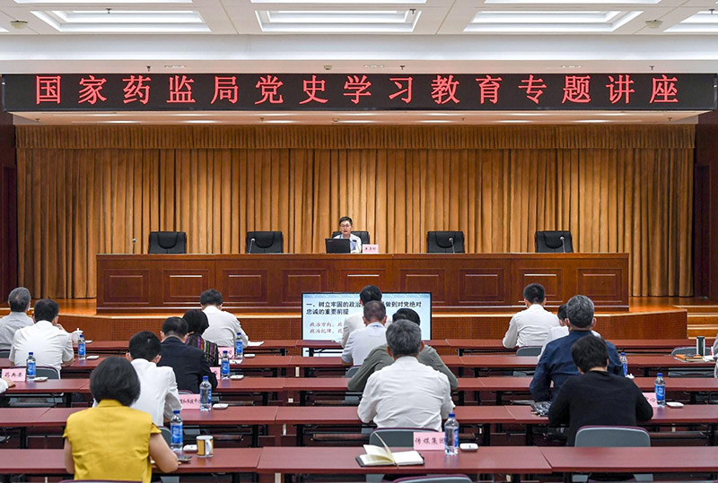 本次专题讲座以现场与线上结合方式进行,国家药监局药品安全总监,机关司局级干部、在京直属单位主要负责同志在主会场参加学习,机关、直属单位其他党员干部在线上同步参加学习。