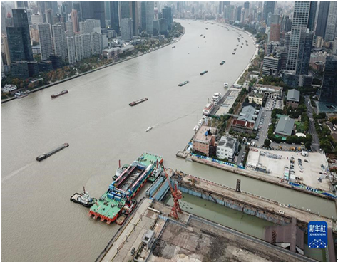 2022年11月25日,“奋力”轮载着长江口二号古船停靠上海船厂旧址1号船坞,准备进坞并在此安下“新家”。长江口二号古船是清同治年间的贸易商船,已有150余年历史。杨浦滨江上海船厂旧址也是拥有百年记忆的城市工业遗存。百年古船入驻百年船坞,将讲述一段新故事。新华社记者 金立旺 摄
