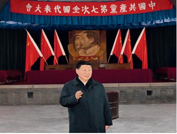 2022年10月27日,中共中央总书记、国家主席、中央军委主席习近平带领中共中央政治局常委李强、赵乐际、王沪宁、蔡奇、丁薛祥、李希,瞻仰延安革命纪念地。这是习近平在杨家岭瞻仰中共七大会址。 新华社记者 燕雁/摄