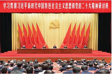 2023年2月7日,新进中央委员会的委员、候补委员和省部级主要领导干部学习贯彻习近平新时代中国特色社会主义思想和党的二十大精神研讨班在中央党校(国家行政学院)开班。中共中央总书记、国家主席、中央军委主席习近平在开班式上发表重要讲话。李强、赵乐际、王沪宁、蔡奇、丁薛祥、李希等出席开班式。 新华社记者 李涛/摄