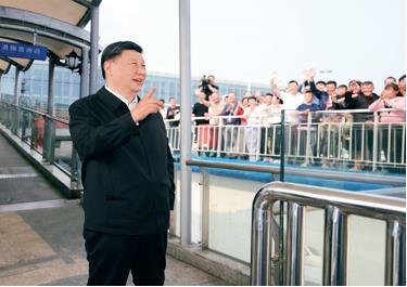 2023年4月10日至13日,中共中央总书记、国家主席、中央军委主席习近平在广东考察。这是10日下午,习近平在湛江市徐闻县徐闻港泊位码头,同船上的旅客亲切交流。 新华社记者 鞠鹏/摄