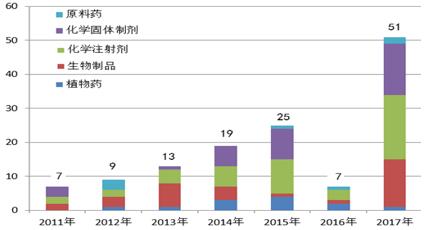 2017年原国家食品药品监督管理总局共派出41个检查组148名检查员完成了51个品种的进口药品境外生产现场检查任务。